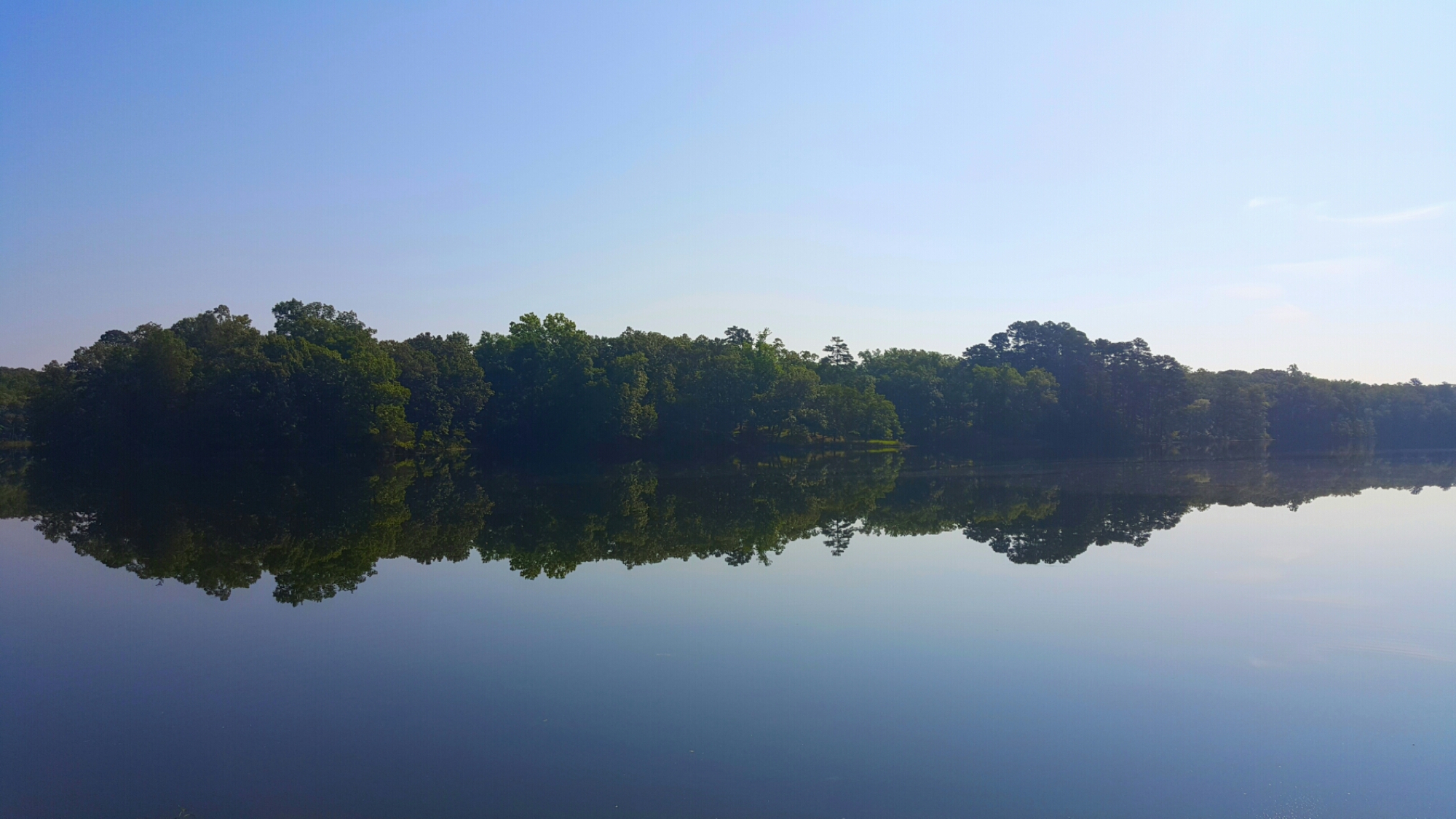 The view as I emerge from my campsite is stunning. There is no breeze and the lake in the center of Tombigbee State Park is like glass.