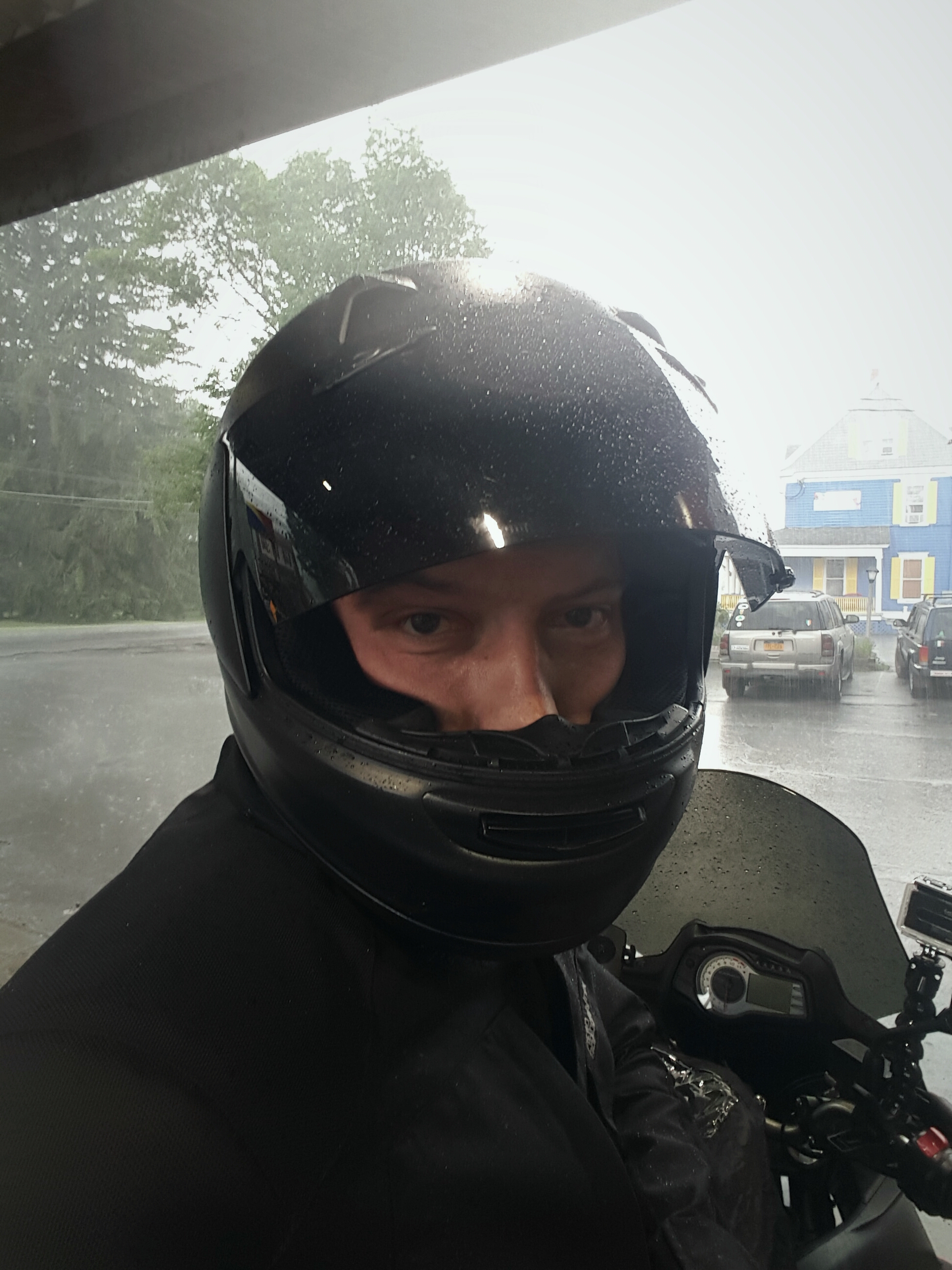 Most of my 175 mile ride over the Catskill Mountains is spent taking in the scenery and thinking about how lucky I have been with the weather thus far on my trip. There is something poetic and apropos about my odometer hitting the 4000th mile of my journey, near where I grew up in Upstate riding motorcycles in the rain, just as the skies open up and the deluge begins. The rain is so strong that maintaining vision through the shield on my helmet is no small task. Thankfully, the riding suit I invested in before departing really holds up to the rain and my clothes stay dry.