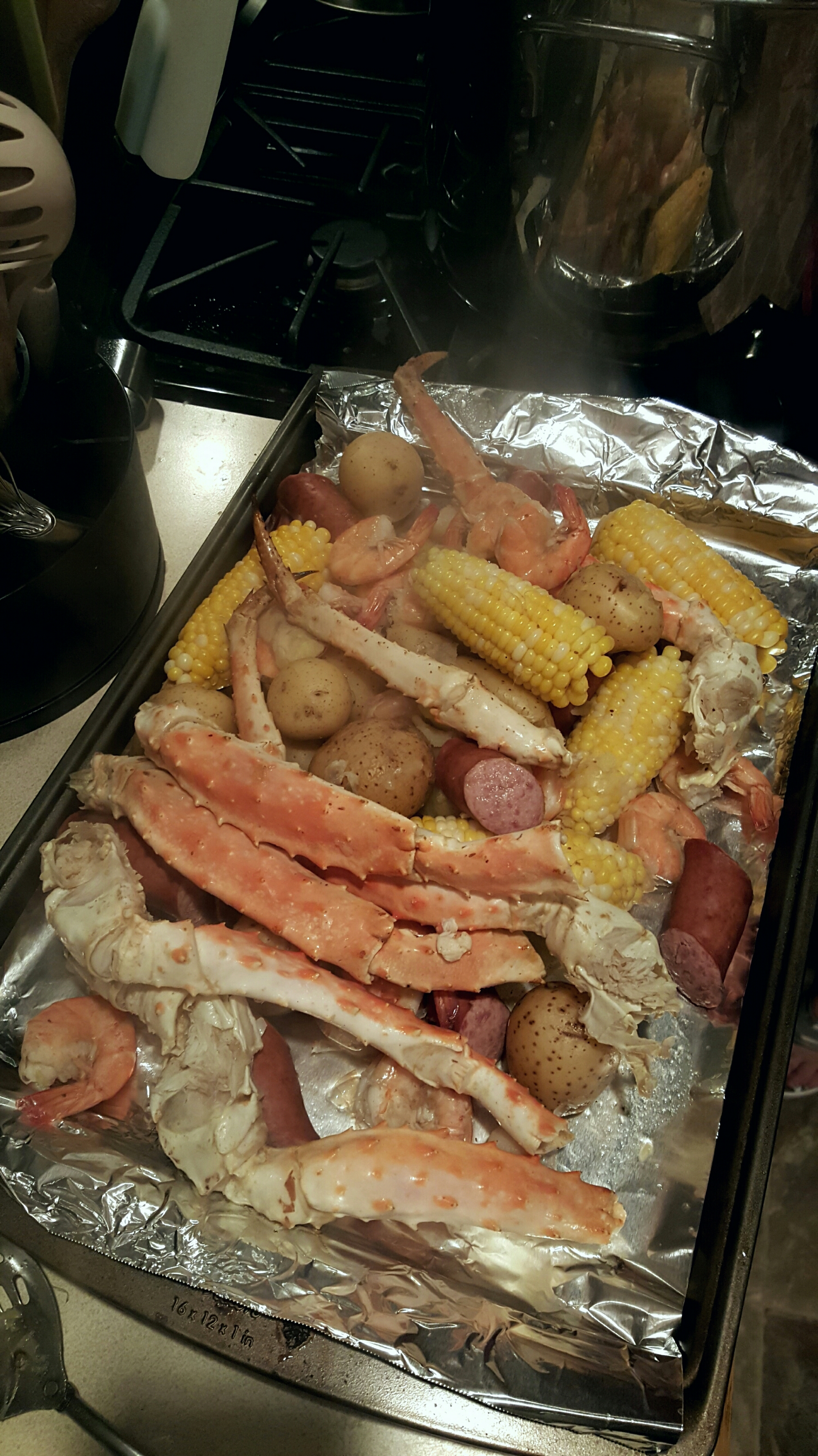 We head back to my mom’s current house, where she has a functional kitchen, for an evening seafood boil. The meal has become a summer tradition and is always extremely satisfying.