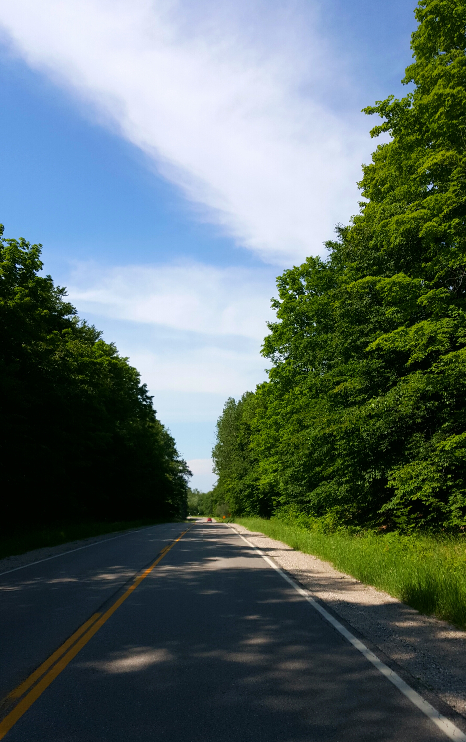 After many entertaining laps around Motor City, I traverse the state of Michigan to find a place to camp on the lake. My friend Chris from LA, who hails from MI, recommended a place called Sleeping Bear Dunes. The ride across the state is beautiful. The two-lane roads through the woods are very fun to ride on and the highlight of the day was riding lockstep with a huge bald eagle overhead. It’s pretty stunning to see one in flight about 20 feet overhead.