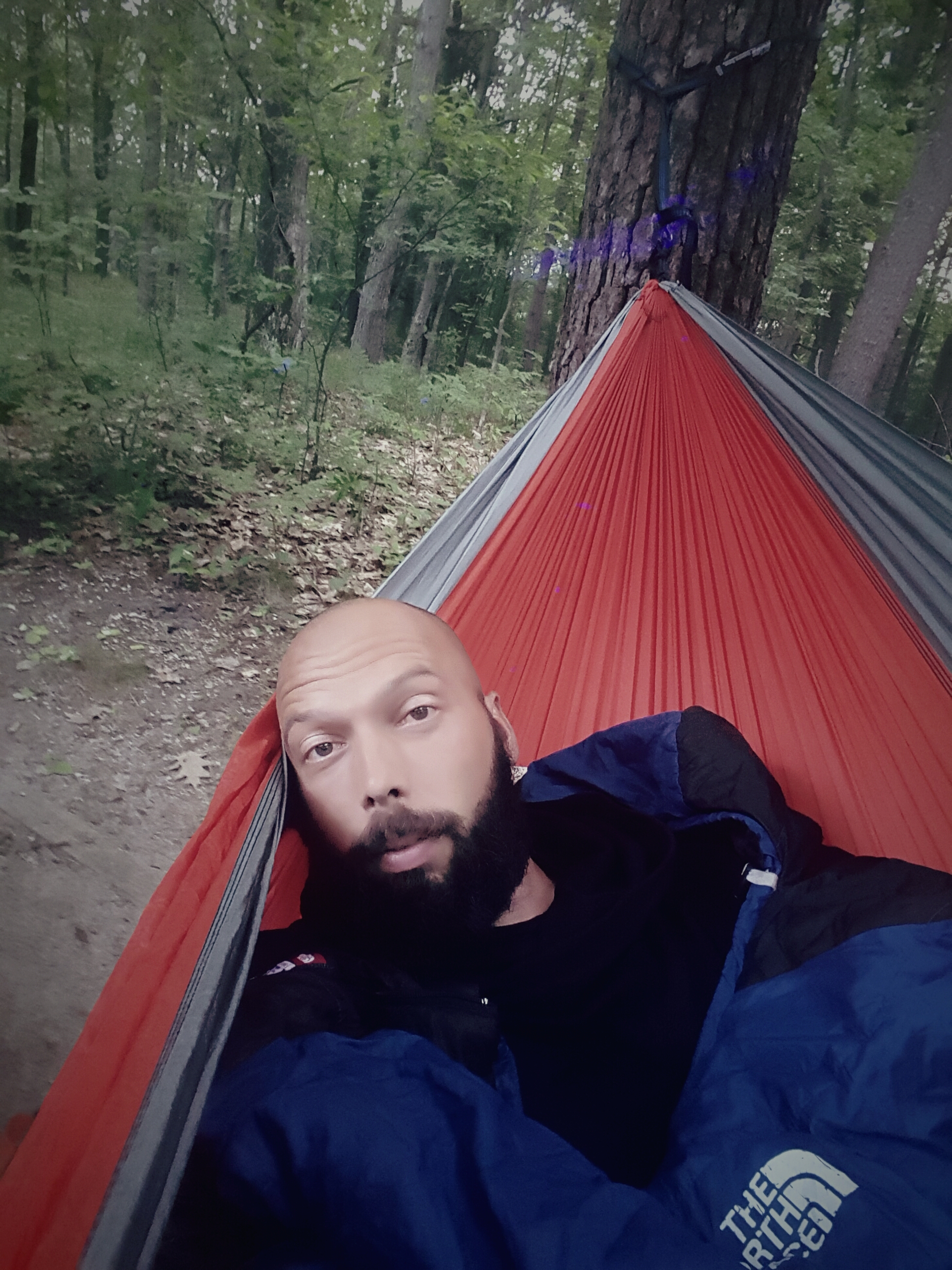 While I was in Oneonta, I picked up a camping hammock. My campsite is conveniently surrounded by trees, so I figure I’ll give it a try. I cook dinner and read for a while in the extremely comfortable hammock before passing out early.