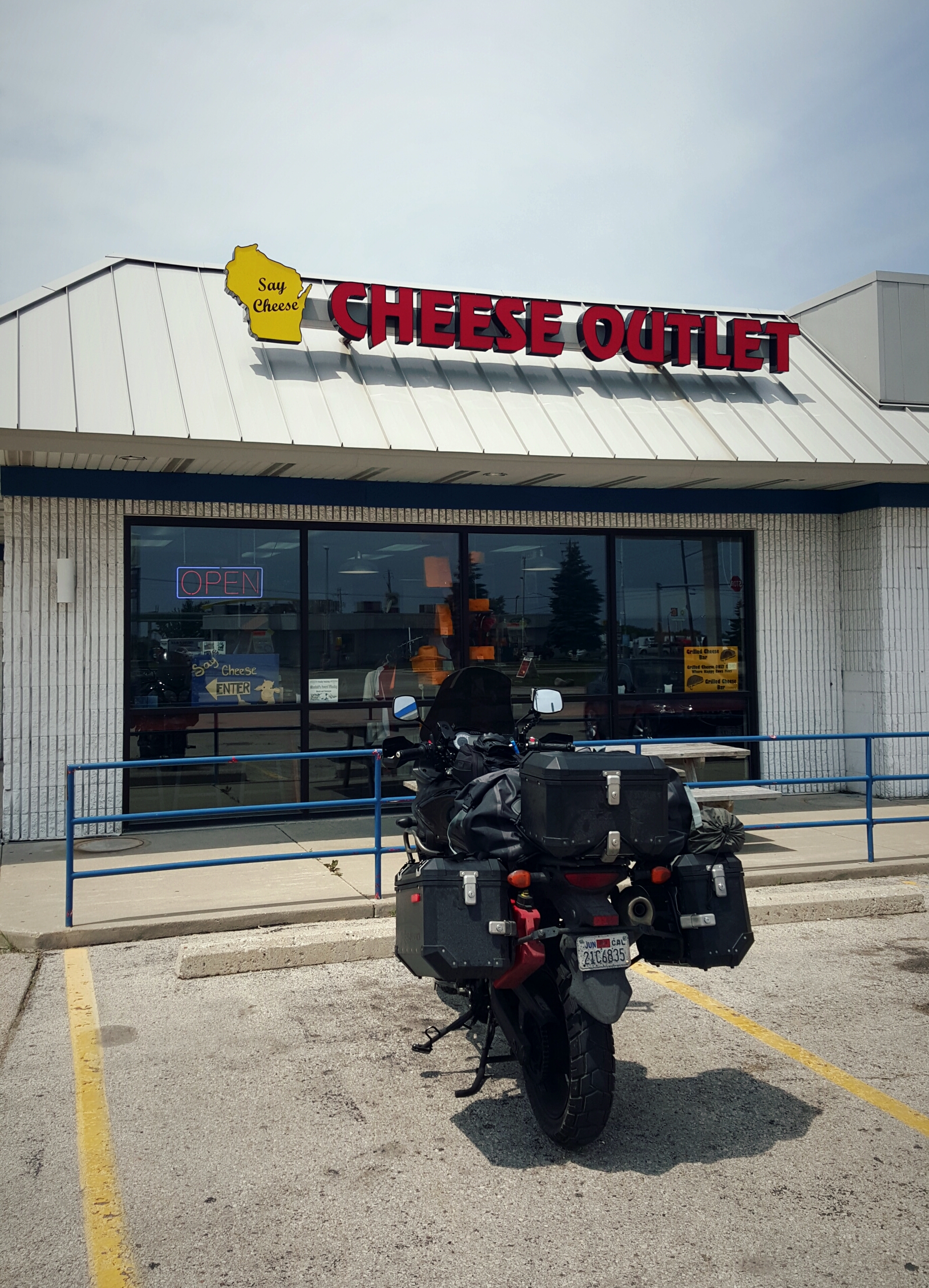Wisconsin is clearly proud of their cheese. They are the second biggest dairy producer in the country (CA is #1) and the farmland is vast. I ride for hours through beautiful rolling farms. Realizing that I crossed into the central time zone and picked up an hour, I eventually stop for lunch at the Cheese Outlet. The cheese options for my grilled cheese are endless, but I eventually settle on a delicious sharp cheddar from Sheboygan, WI.