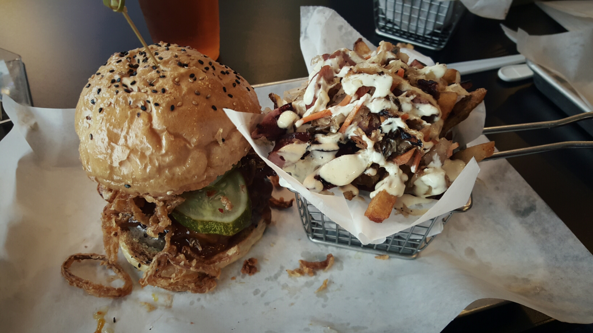 The four of us head out to a new place called Leadbelly for dinner. Claus has told me about the amazing hamburgers they craft and I’m excited to give it a try. I opt for the slightly ridiculous Amazing Grace. It’s topped with smoked pork belly, onion straws, spicy sriracha pickles and mustard BBQ sauce. It is as good as it sounds. The french fries are equally as gluttonous and are covered in polish sausage, sauerkraut and horseradish mustard sauce.