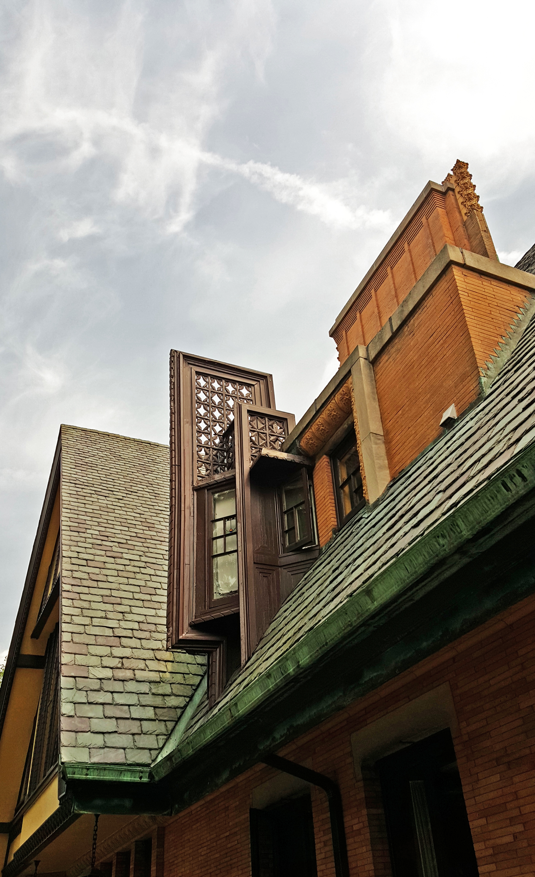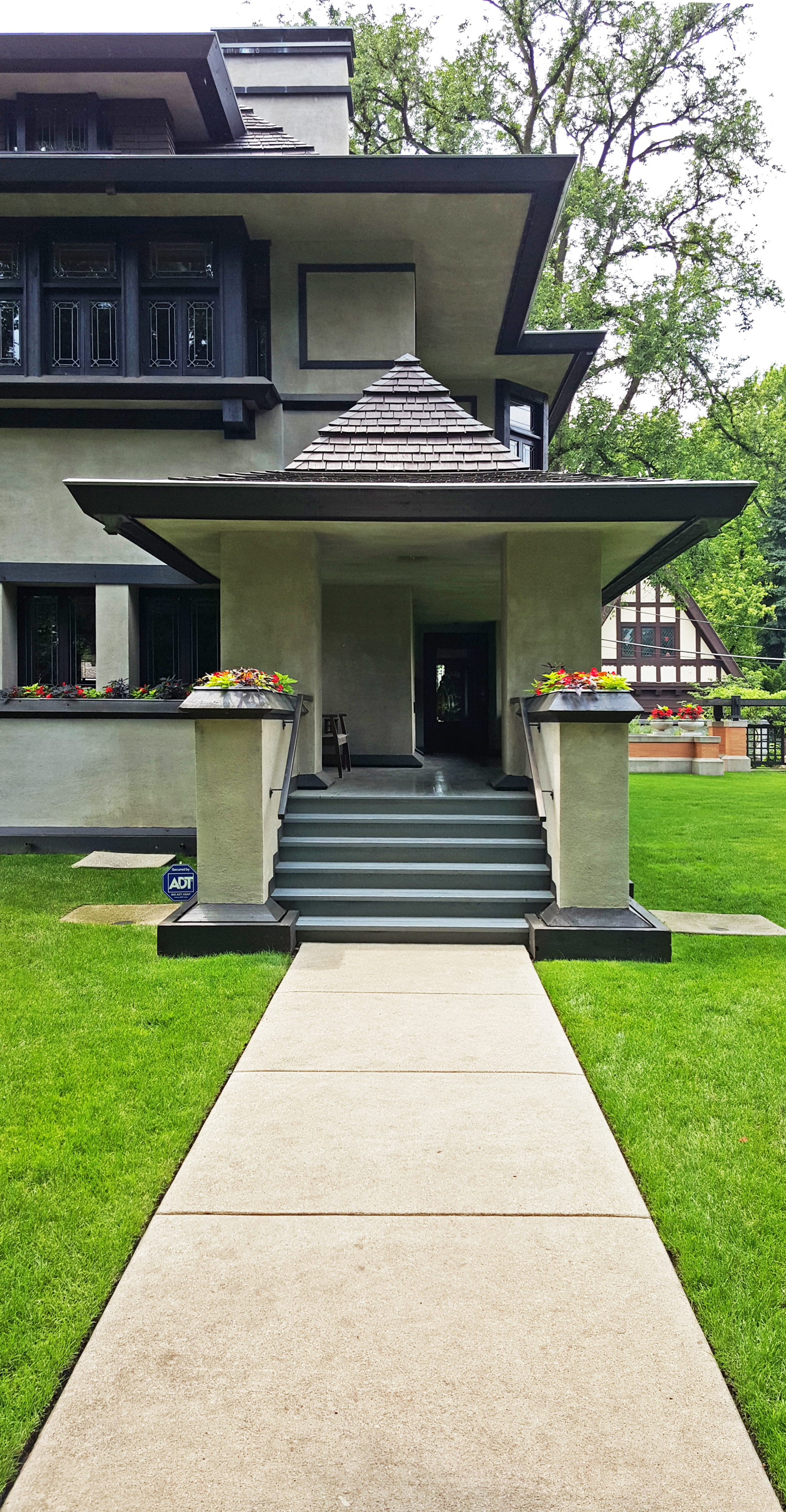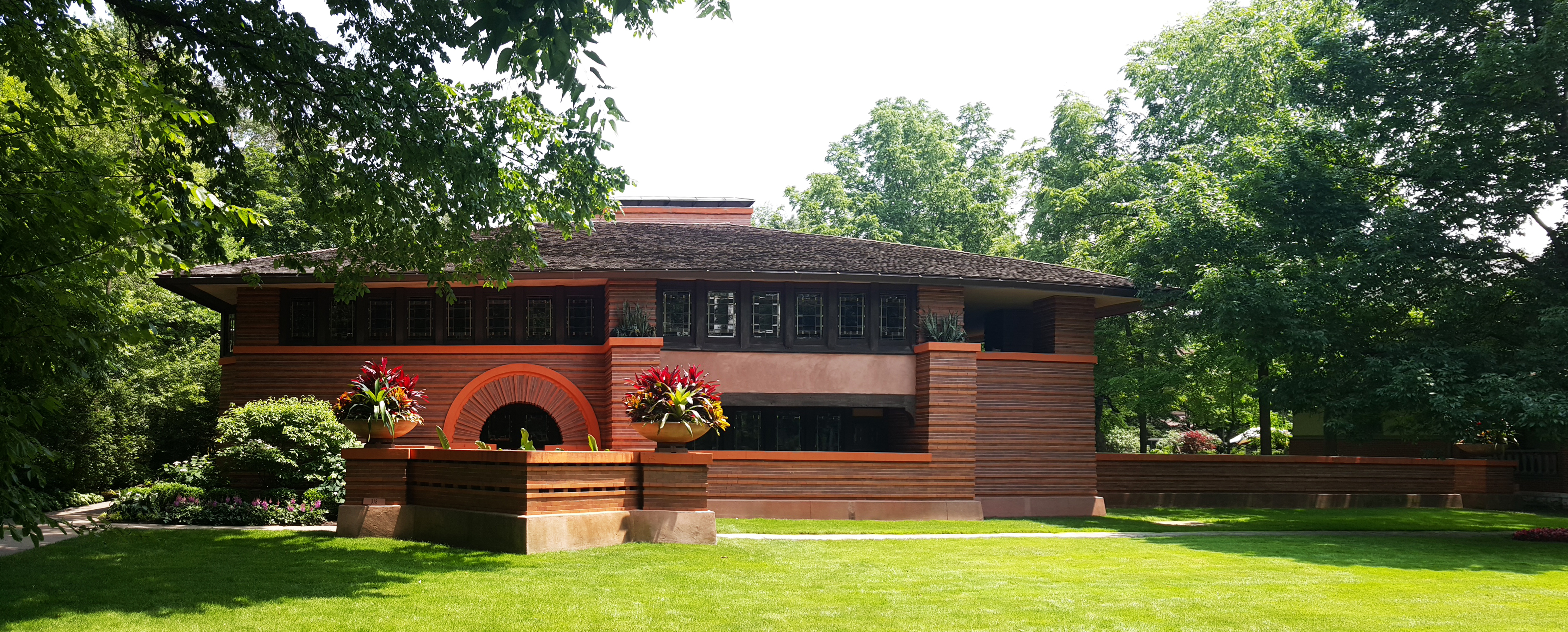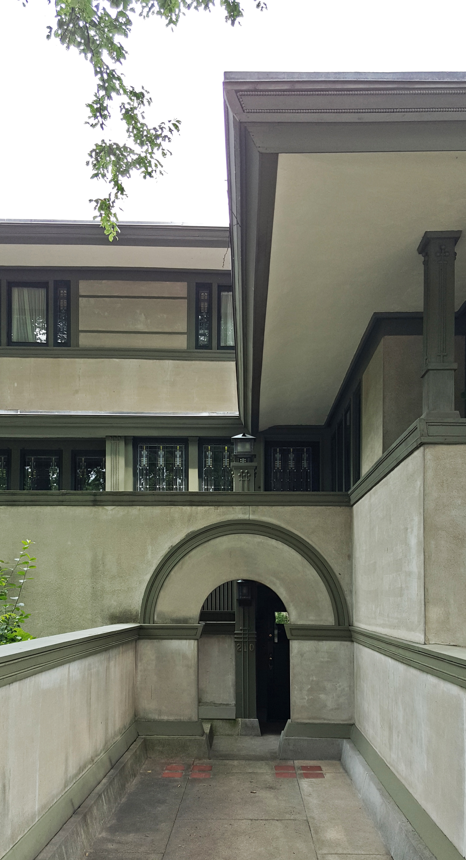 After a slow Sunday morning, Claus, Julie, Vivian and I decide to head to the Chicago suburb called Oak Park to check out Frank Lloyd Wright’s home. I knew he had his home and office there, but I didn’t realize that its the largest collection of Wright designed houses in existence. We park the car on the beautiful tree-lined street called Forest Avenue and head north to see his home and studio. On the way, we pass two other houses clearly designed by him. Once at his home, we pick up a map of the thirty-five houses he designed between 1889 and 1913. We skip the guided tour of his home and opt for a self-guided walking tour of the houses on the map. Seeing all of the houses in succession is an amazing sampling of his residential work. He was clearly using the commissions surrounding his office as a test bed for a plethora of design ideas. The variety of styles, materiality and details is fascinating and runs the gamut from Tudor to Japanese inspired.