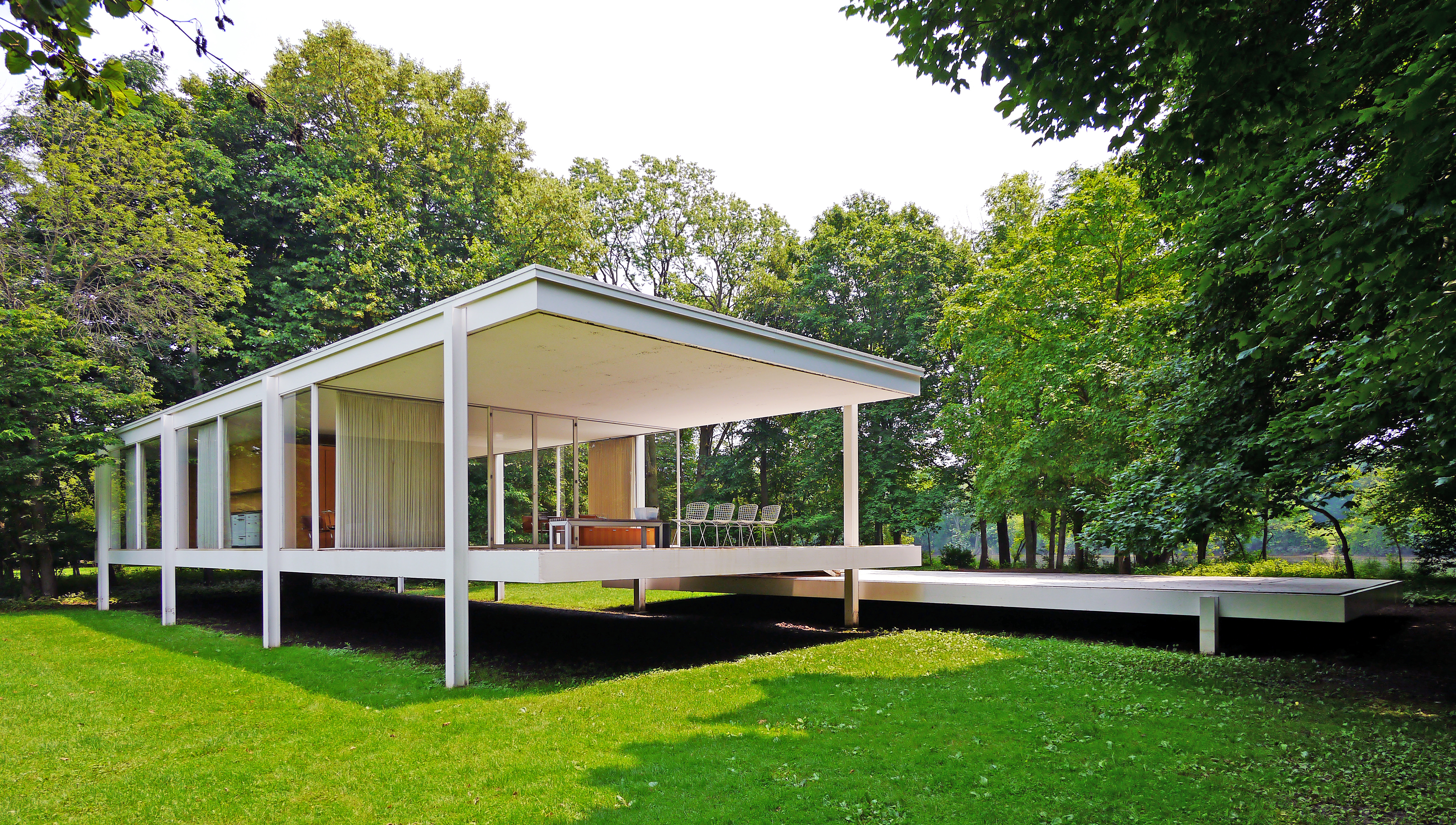 I get on the bike to ride sixty miles outside of the city to visit the Farnsworth House designed by Mies van der Rohe. The first half of the ride is on highways, but the second half is through rural countryside and vast cornfields. The house is located on the Fox River in the town of Plano, IL. I arrive at the visitors center located just off a little two-lane farm road. My tour group includes another architect and her mother-in-law and our 60-something docent named Pam. We are led on the half-mile walk down a muddy path toward the house. While we walk, Pam asks me where I’m from. I tell her the story of my trip and where I’ve been. She is very excited and wants to hear all about the other buildings I’ve visited and the sights I’ve seen. My tourmates also join the conversation and soon we are engrossed in a conversation about travel, architecture and motorcycles. Suddenly, the chatting comes to a grinding halt as the three horizontal white planes of the house emerge from the lush green surroundings.