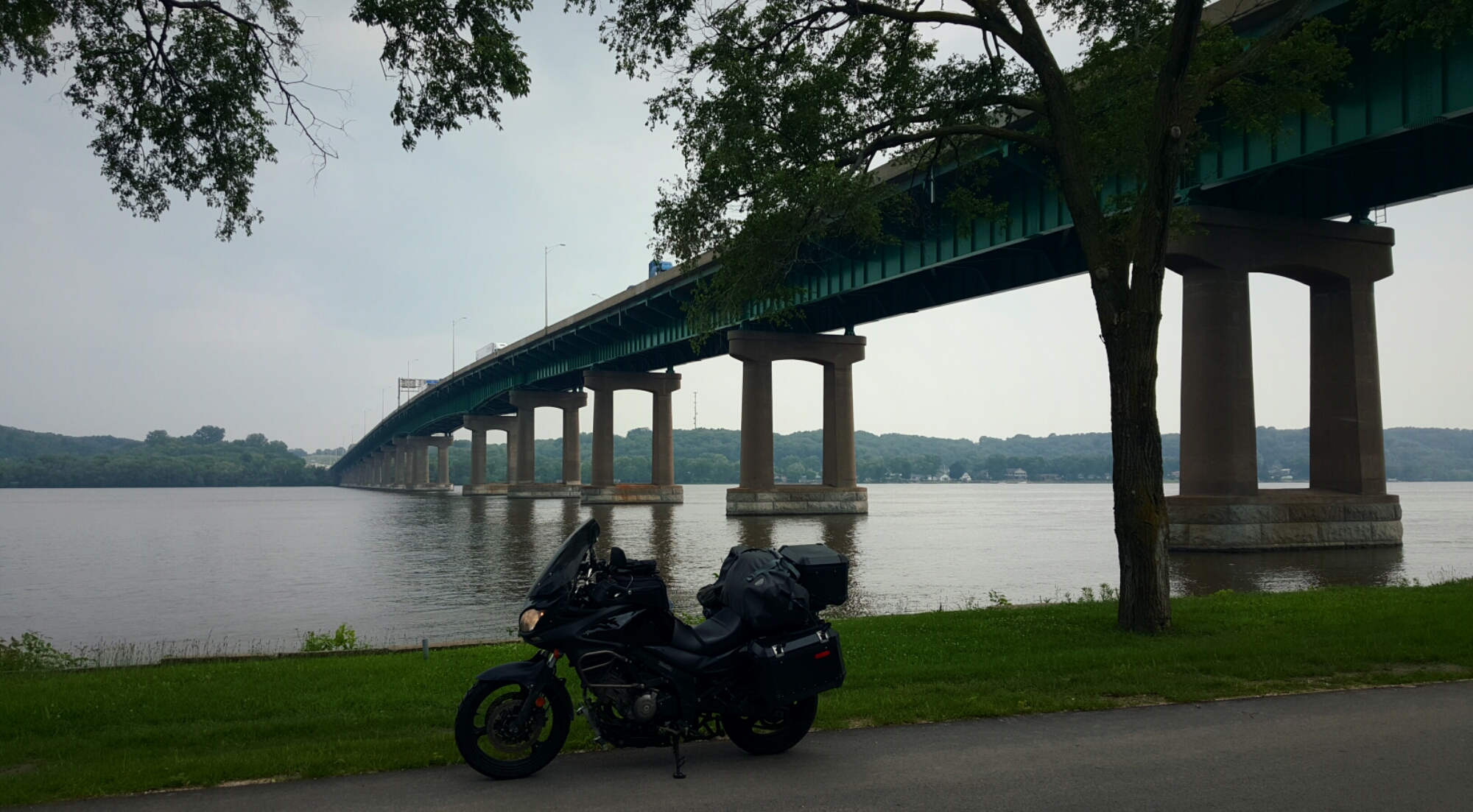 [crossing the Mississippi river on the Fred Schwengel Memorial Bridge]