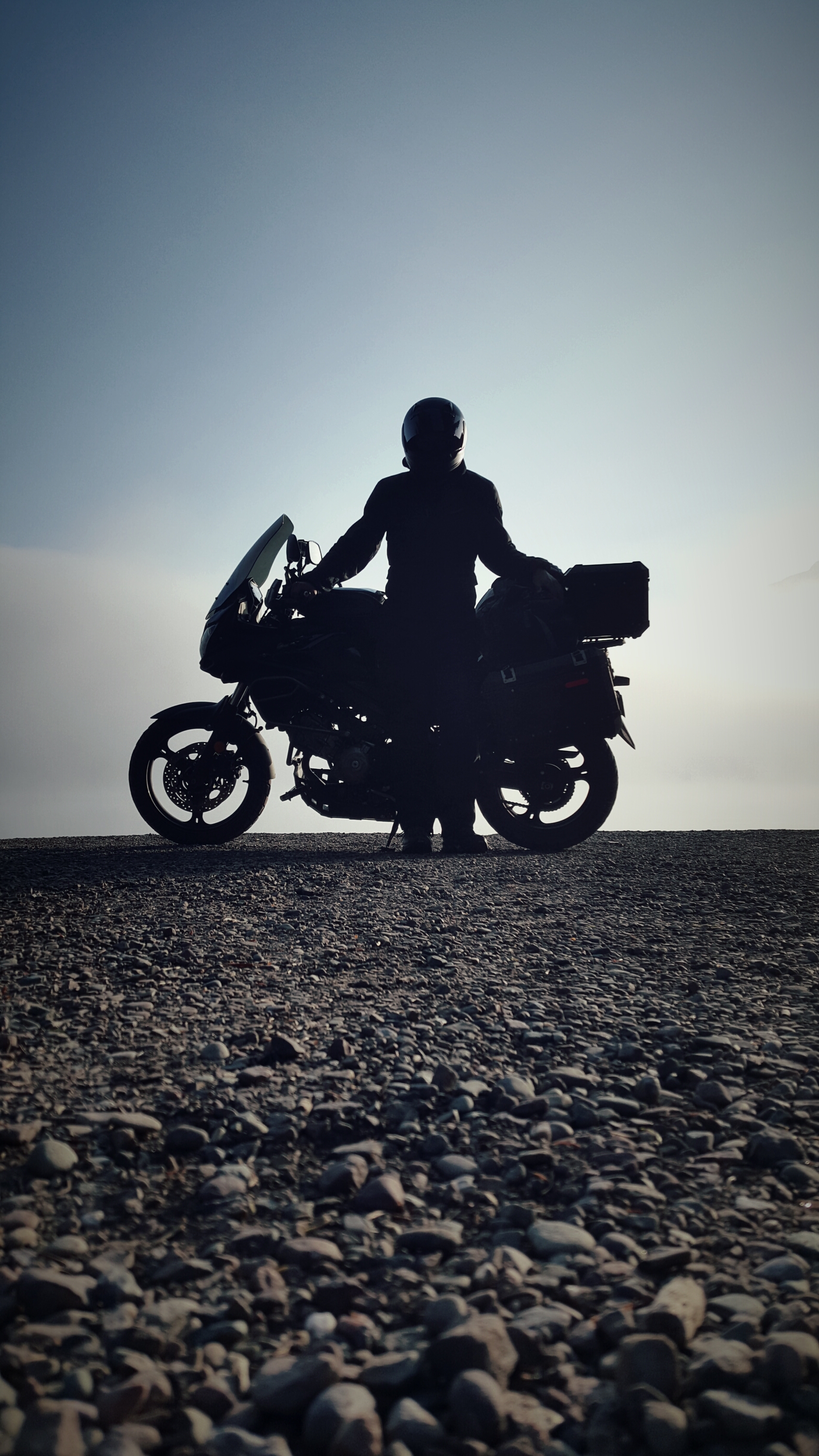 Albeit enjoyable, after standing up on the pegs for another two hours at 6:30 in the morning, my thighs are burning and it feels great to hit a paved road and settle back into my seat.