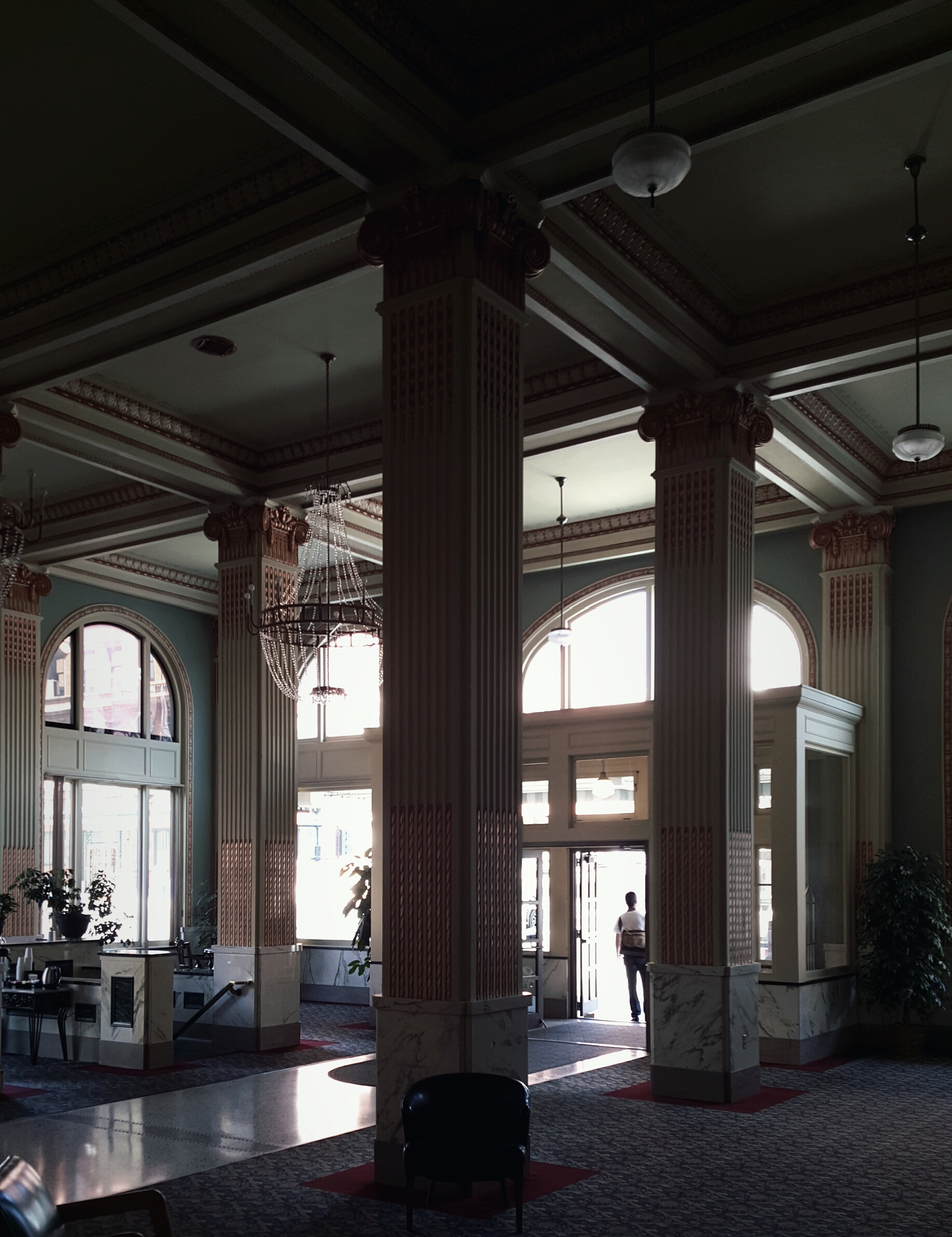 As I’m checking out of the hotel, I begin reading about the history of the Finlen Hotel on a sign near the front desk. Once the woman at the desk senses that I’m interested, she swoops in to inform about the place. Apparently it was modeled after the Hotel Astor in NYC and was opened in 1924. There were few expenses spared in the finishes and the photos posted in the lobby suggest that it was the place to be in Butte’s heyday.