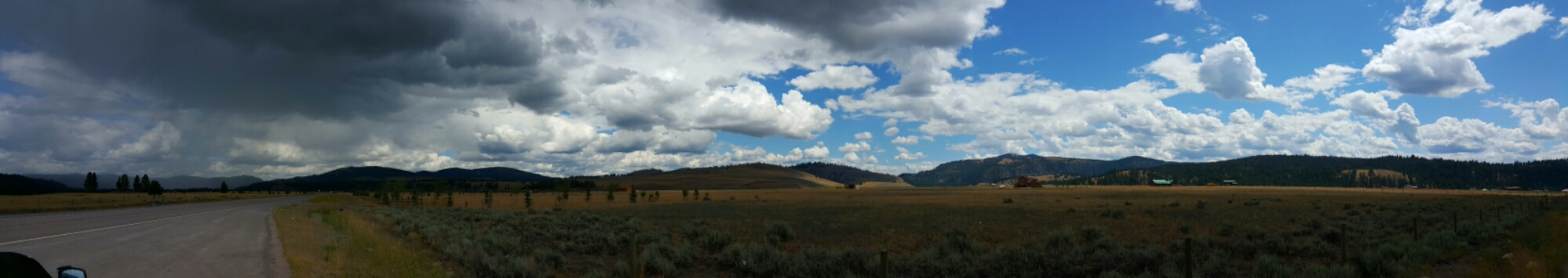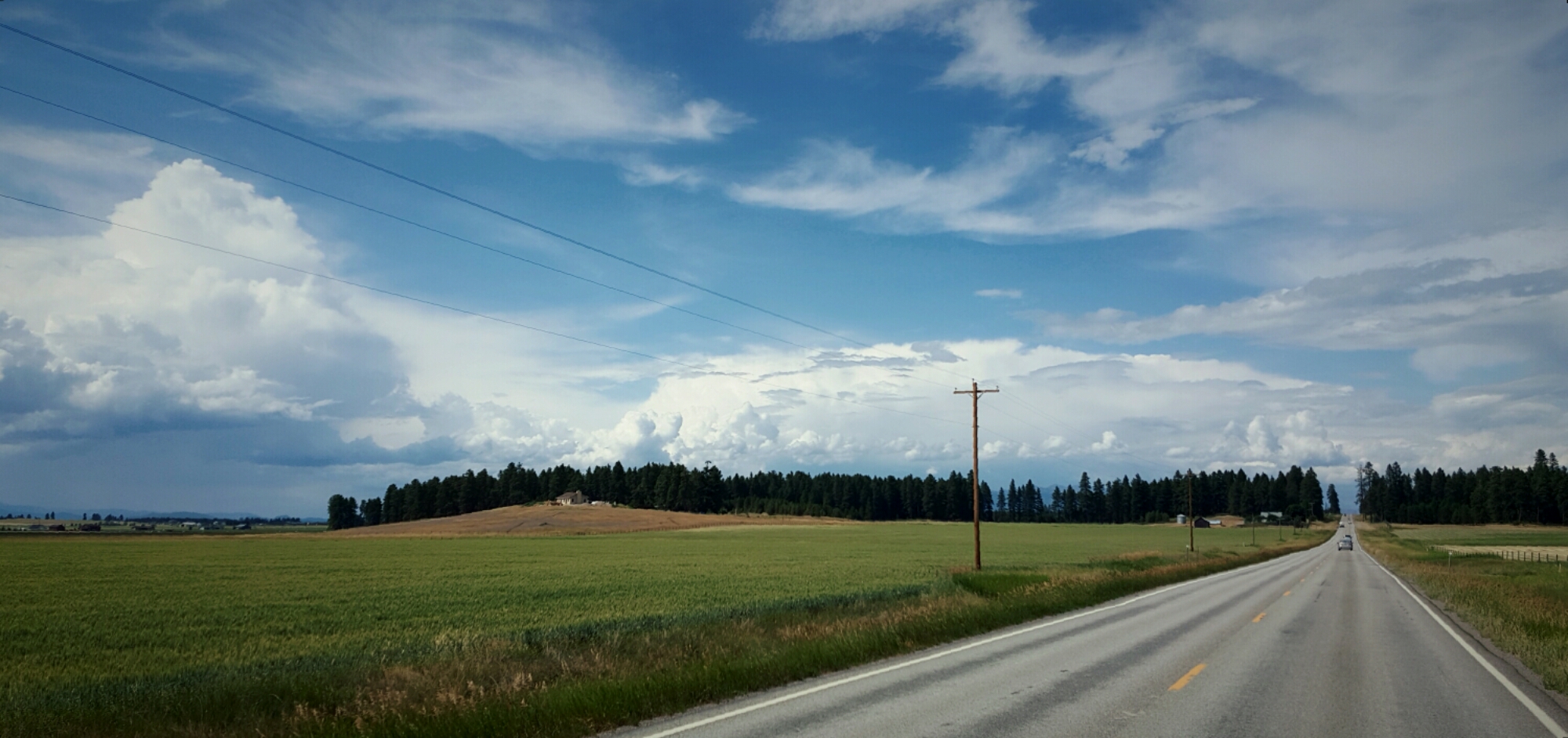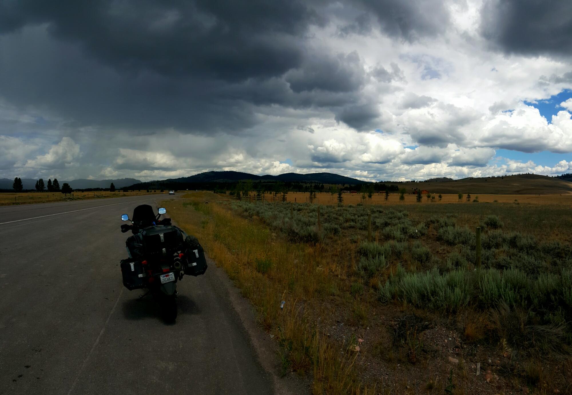 The trek north leads me first through vast farmland where I hit another very vivid rain cloud. I get twenty minutes of rain and then I’m on the other side of it. I traverse Lolo National Forest, then Flathead National Forest. The roads are great and the pungent smell of pine trees is an amazing addition to the ride.