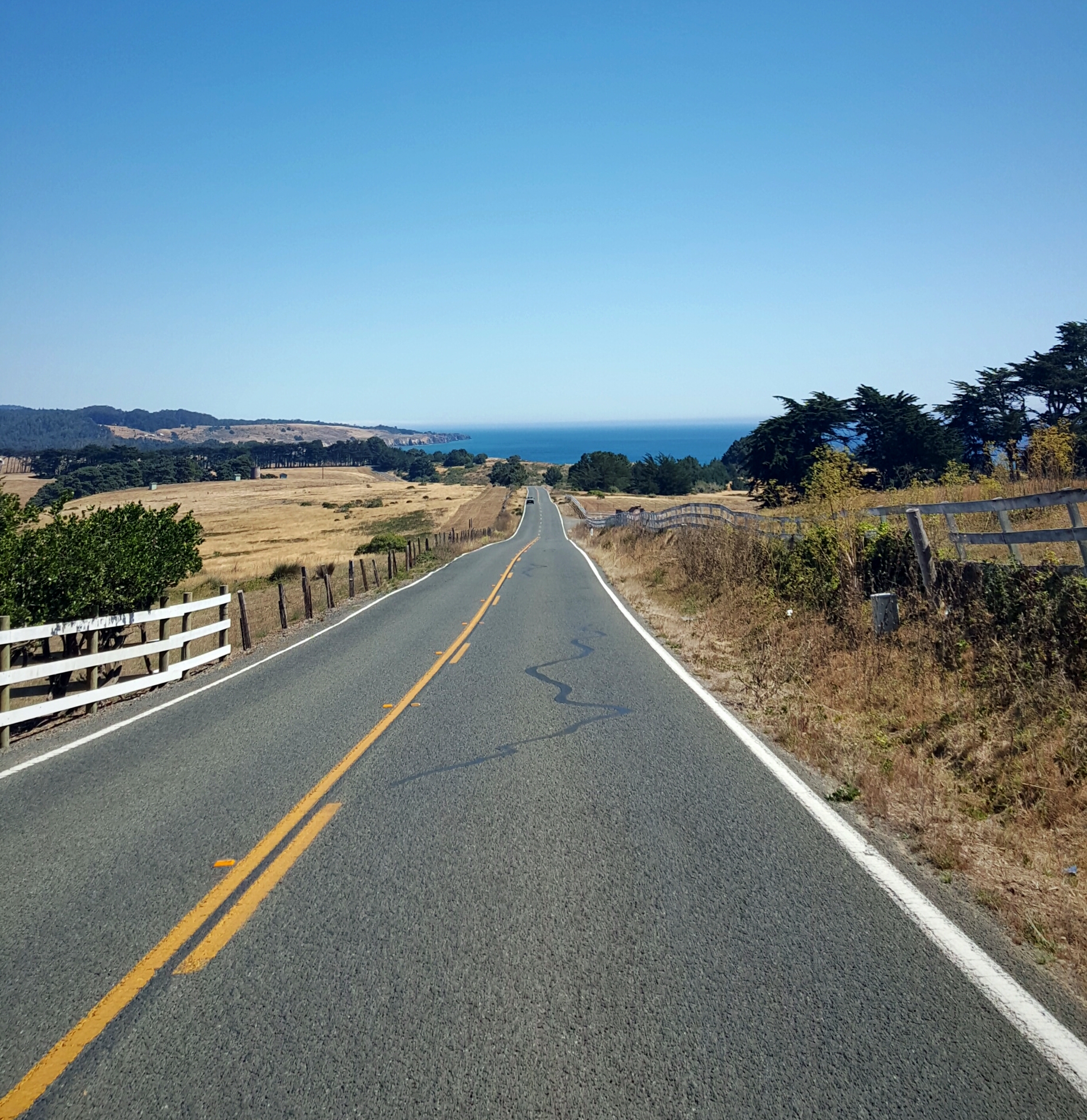 One portion of the road dives inland near Point Arena, CA and scenery quickly changes to very dried up farmland. The road then sweeps back the ocean