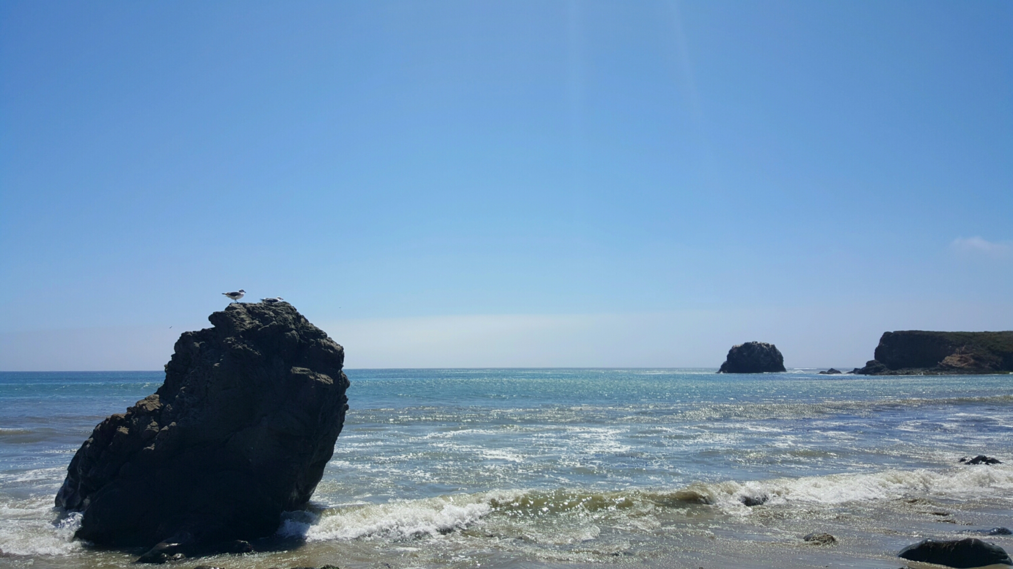 At the first three spots where I attempt to procure a campsite, the attendant laughingly tells me that without a reservation, I’ll be lucky to find a spot. At the fourth and likely last campground in town, the sweet old lady at the booth tells me that someone is vacating their spot a day early and that I am welcome to have it. It seems too good to be true, but campsite #45 under the redwood trees is there for the taking. I hastily set up camp and head for the beach.